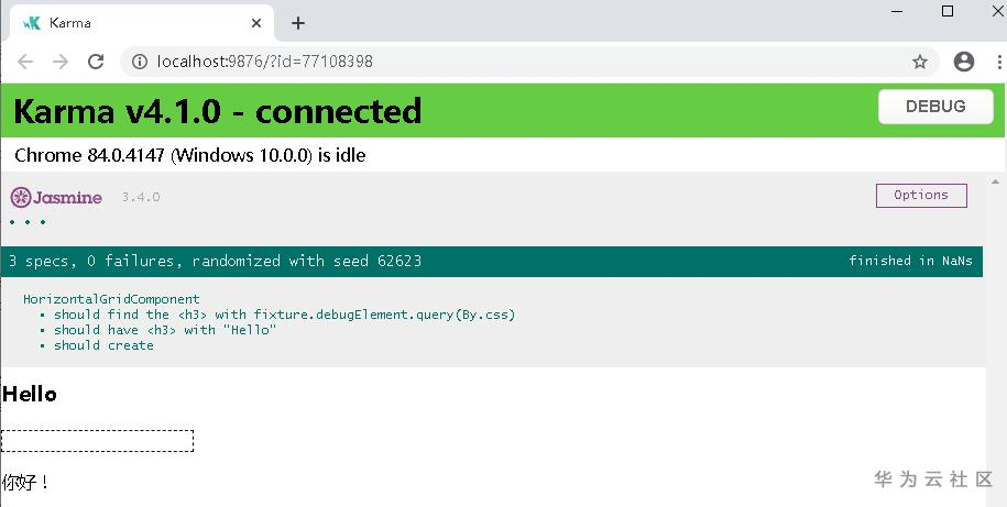 使用CLI创建的项目是可以立即用于测试的,运行CLI命令 ng test即可。ng test 命令在监视模式下构建应用,并启动 karma 测试运行器