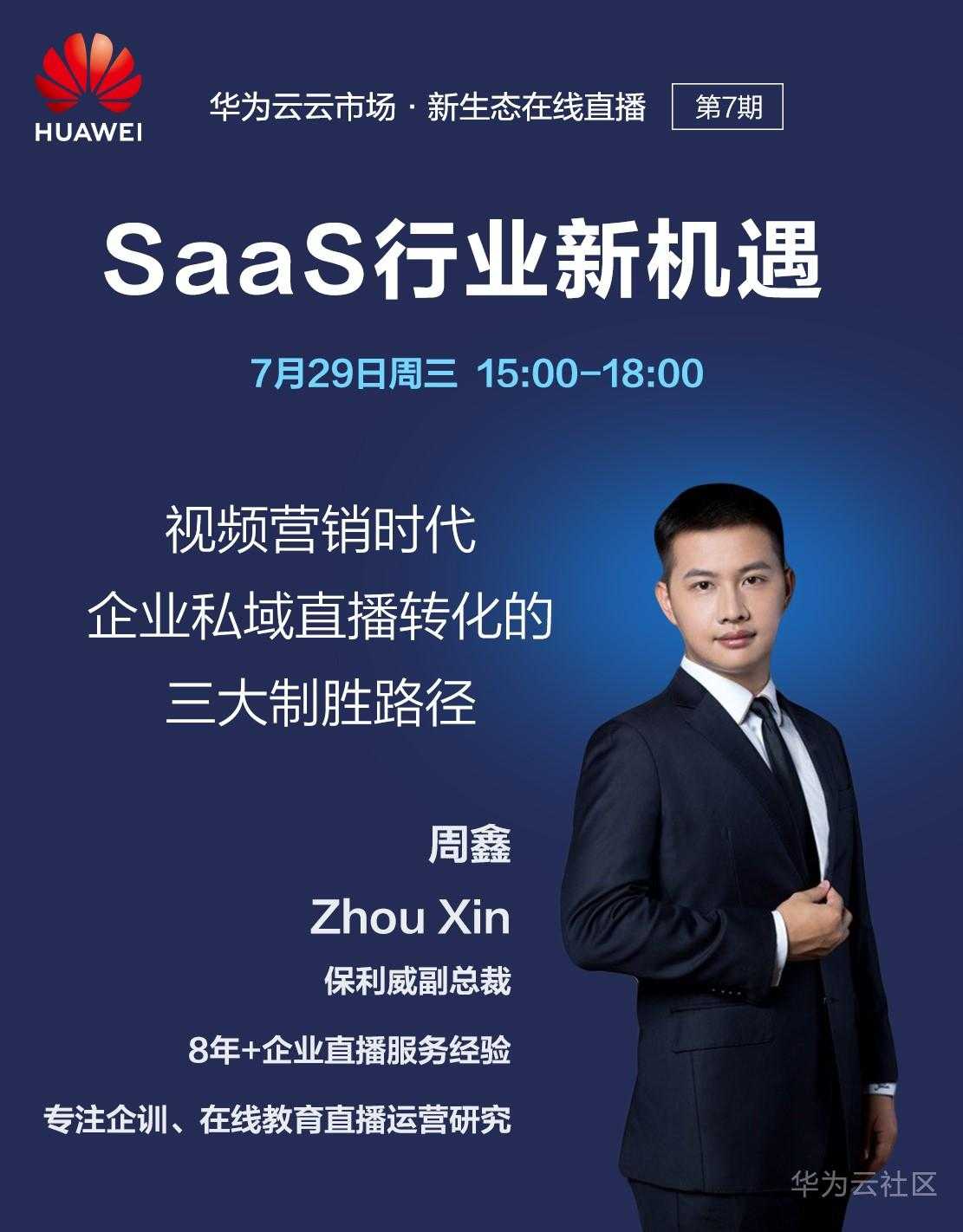 7月29日,华为云云市场直播间特邀保利威副总裁周老师发表主题演讲《视频营销时代,B2B企业私域直播转化的三大制胜路径》,从2个经典解决方案和3大关键闭环切入,畅谈企业直播获客方法论。