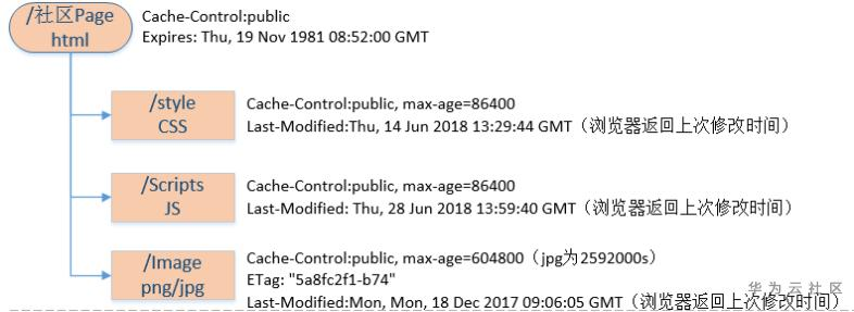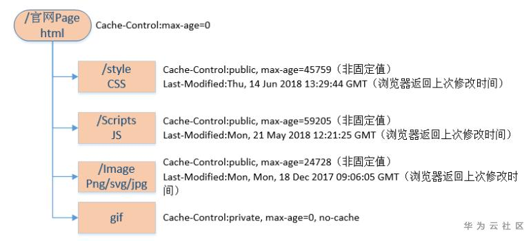 在现网页面中,css、js、image等不同类型文件的缓存策略大致相同。即同时存在强缓存和协商缓存策略。对于强缓存,给定本地缓存的有效时间max-age,一般根据不同文件类型的确定max-age大小;对于协商缓存,给定Last-Modified和Etag标识,服务器端验证客户端缓存的有效性。本章中给出了,官网各部件浏览器端缓存策略的简介。但是,部分文件会存在特殊的缓存设置。比如,页面中很多的js、css、image等会添加版本号,强制刷新缓存等。