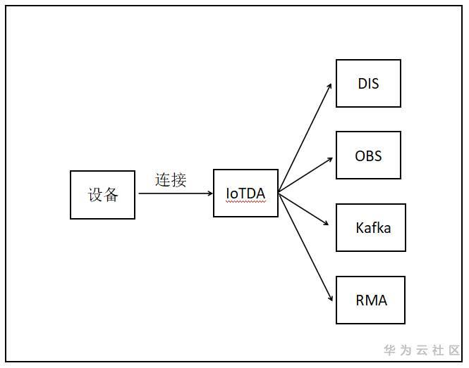 IoTDA中提供了规则引擎,可以方便的将设备的数据转发到华为云的数据接入服务、对象存储服务、分布式消息服务Kafka和应用与数据集成平台ROMA。如下图所