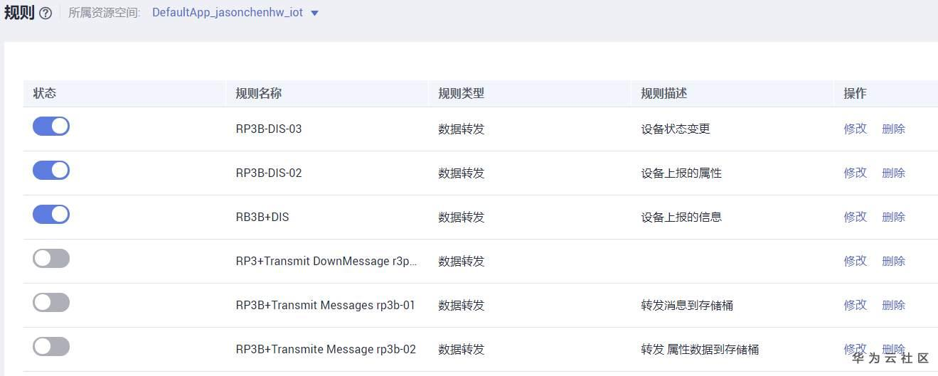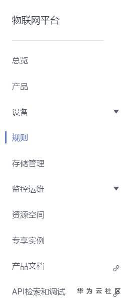 RaspBerry Pi 3B+已经可以成功连接到IoTDA平台了。在控制台中的物联网平台中,进入如规则。如下图所示。