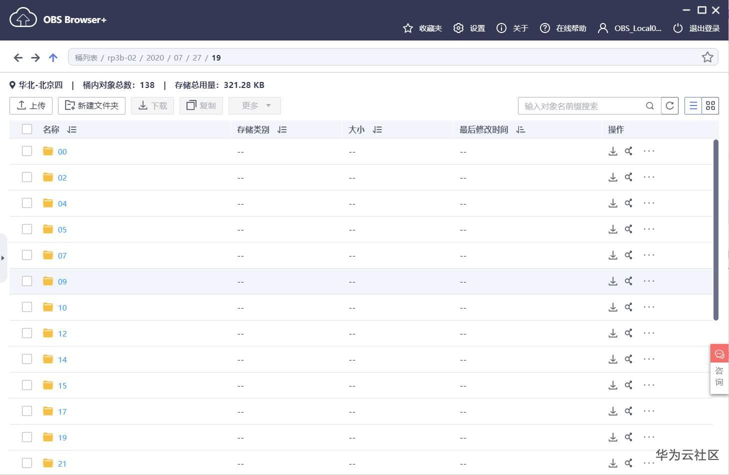 使用OBS Browser+查看桶中的数据,如下图。
