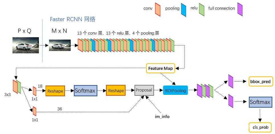 Faster R-CNN是在R-CNN,Fast R-CNN基础之上发展而来,原理图如下:
