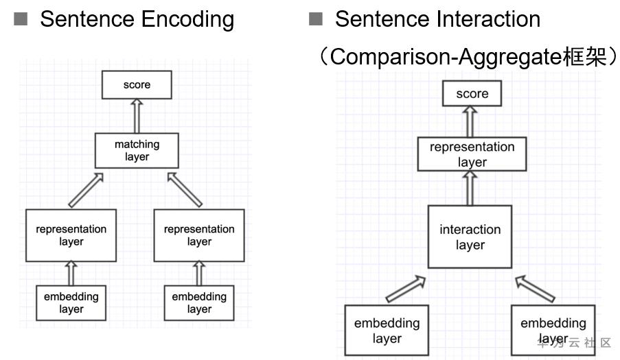 目前,文本匹配模型主要有两种结构,分别为SE结构(Sentence Encoding)与SI结构(Sentence Interaction),如图二所示。