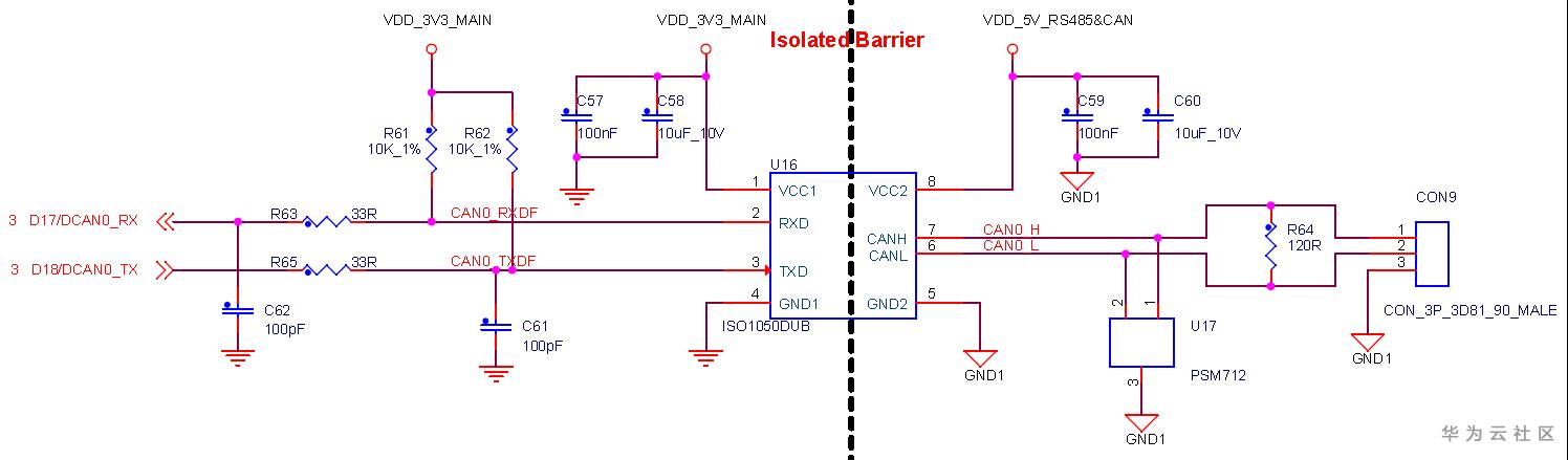 开发板搭载有一个CAN总线接口CAN。CON9为对应接线端子,接口定义如下图: