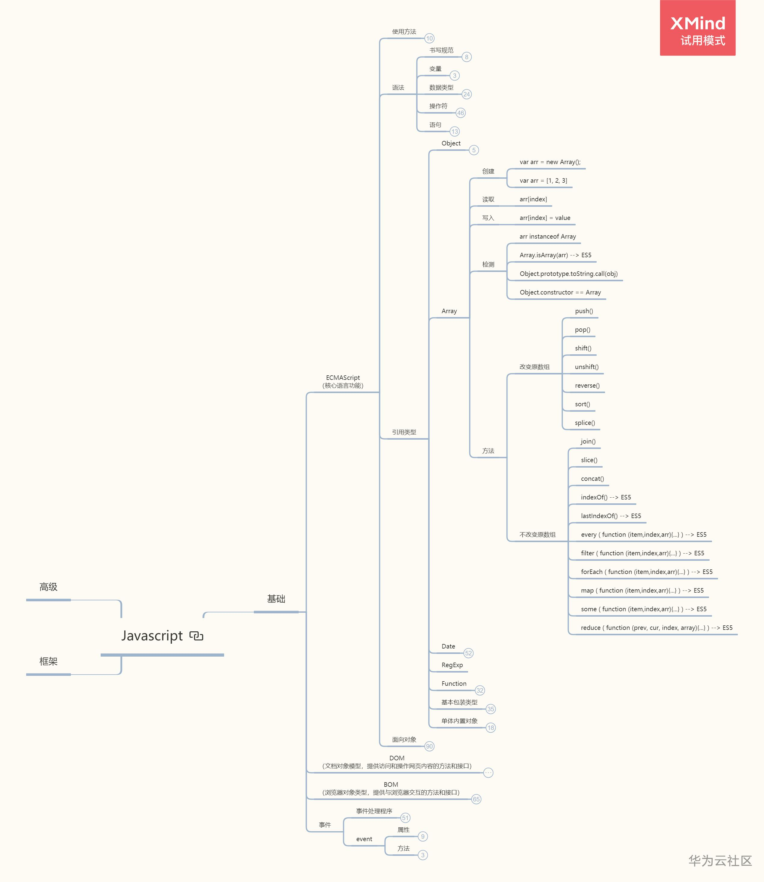 我们还是老套路,结合思维导图来学习数组: