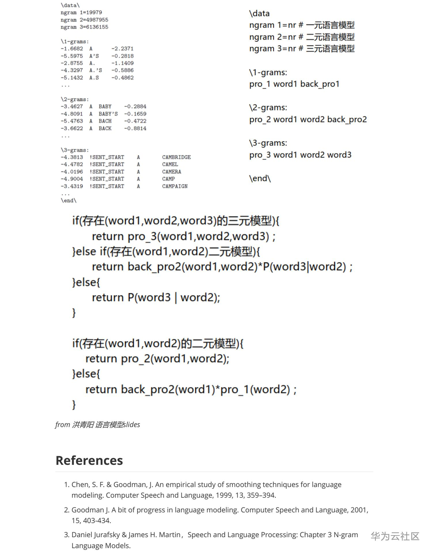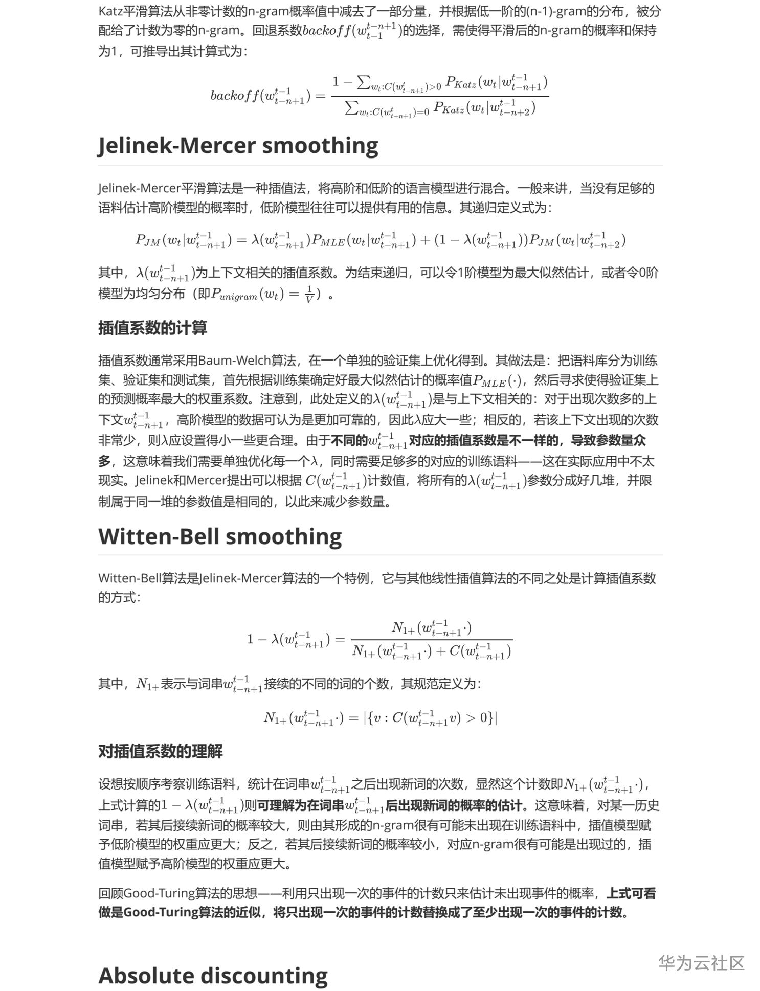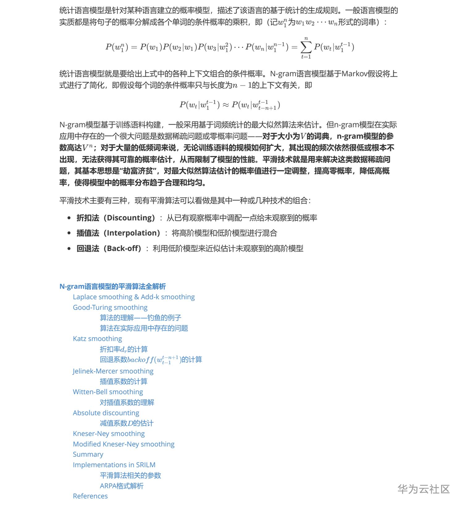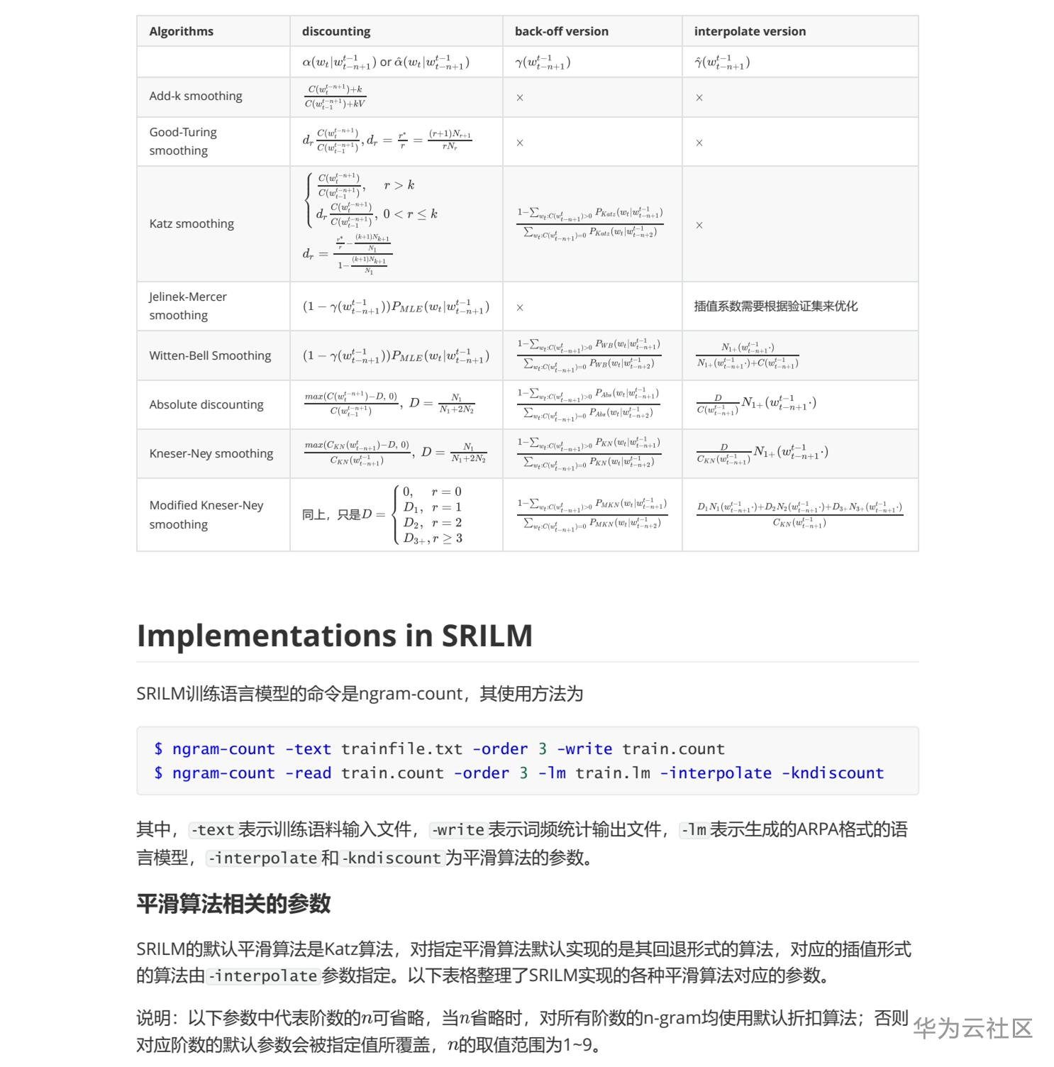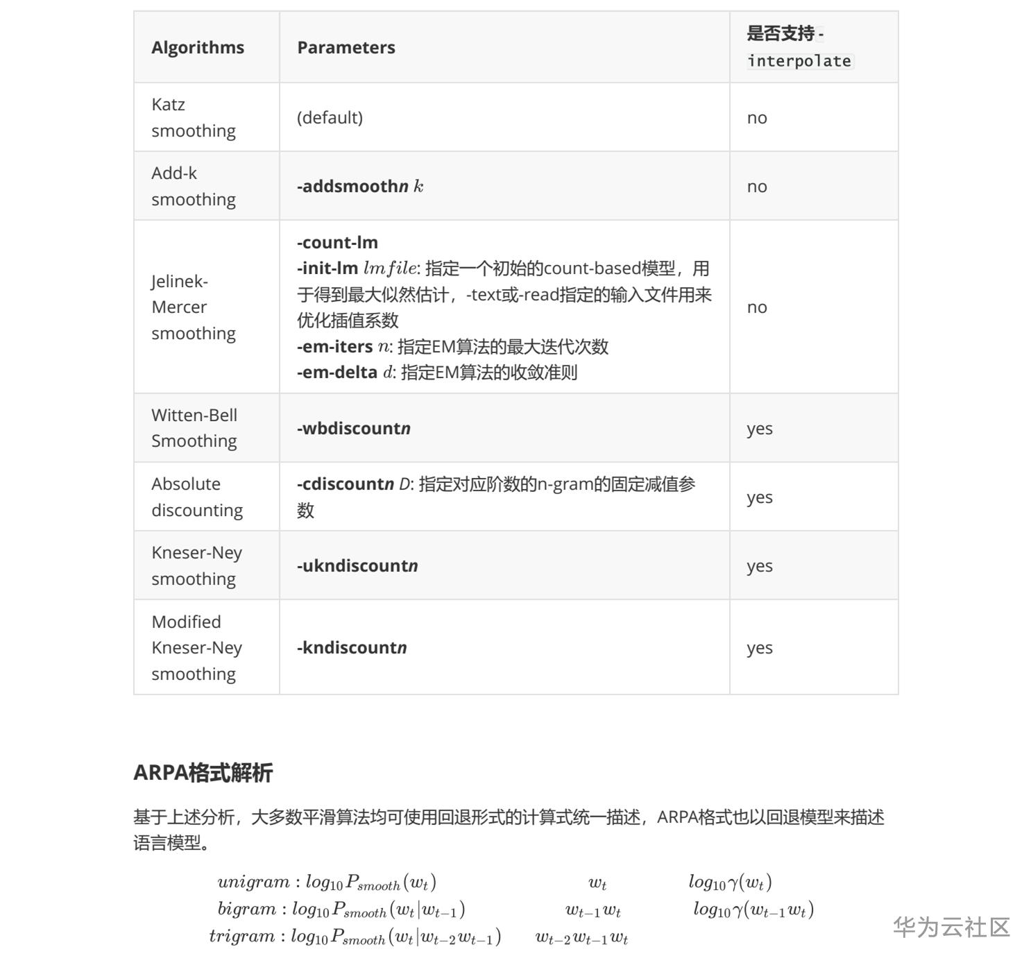 【摘要】 平滑技术用于解决N-gram语言模型训练过程中存在的数据稀疏或零概率问题,是提高语言模型性能的核心技术。本文介绍了几种常用的平滑算法,并对SRILM的平滑参数及ARPA格式的语言模型进行了解析。