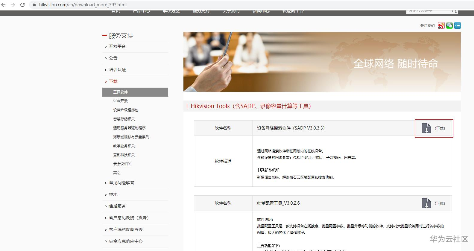 3、在“工具软件”栏,选择Hikvision Tools(含SADP、录像容量计算等工具)