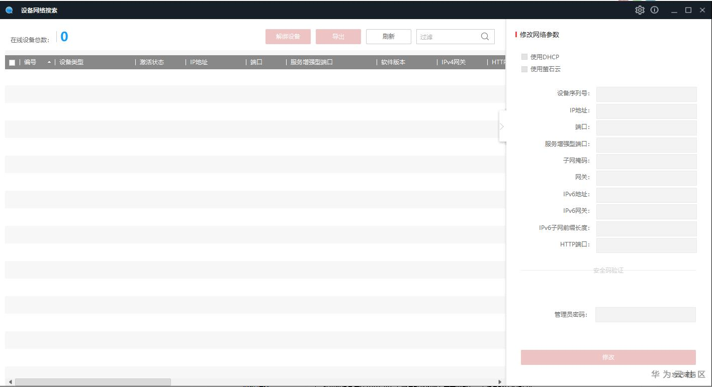 修改设备的网络参数:包括IP 地址、端口、子网掩码、网关等。