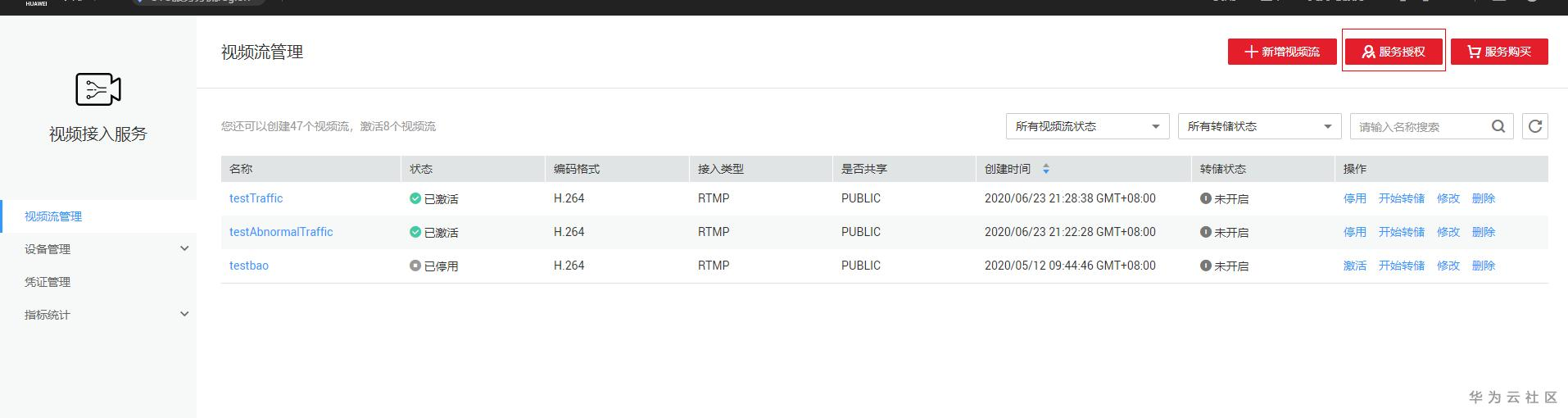 2、用户授权VIS操作其OBS相关资源的权限,以便VIS将用户接入的视频资源存储至用户的OBS中,用户可根据是否有转储需求选择是否授权。