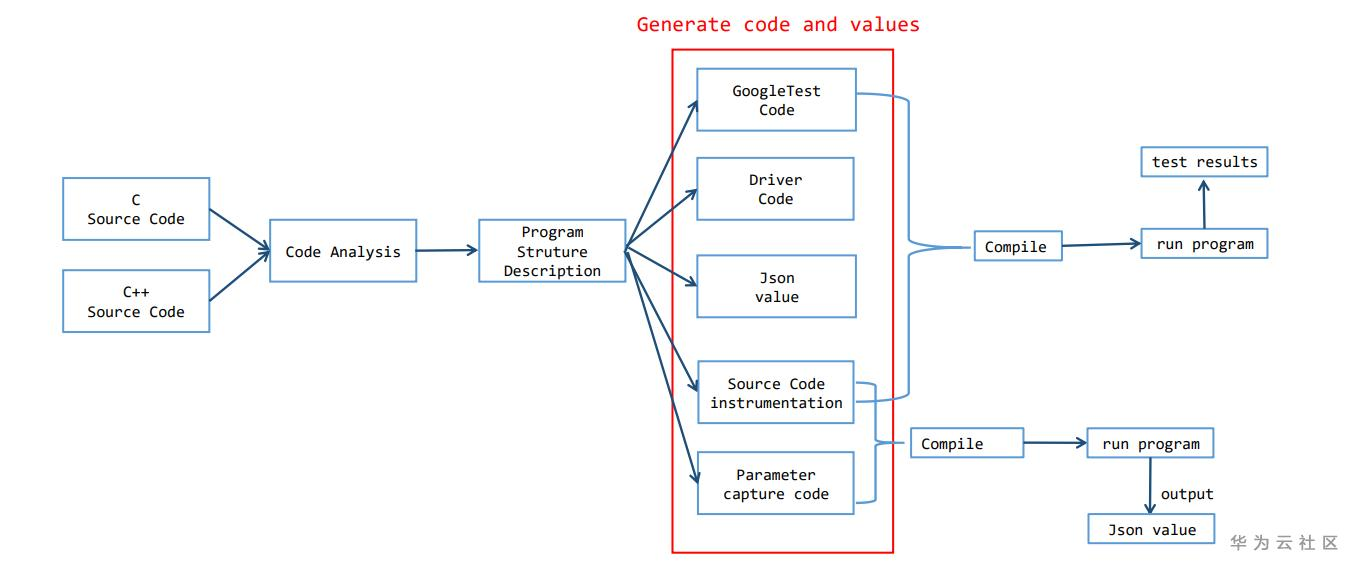 Wings通过获取到的存储信息,依据一定的编码规则,构建不同的代码程序,如驱动程序、期望断言程序、参数捕获程序等。