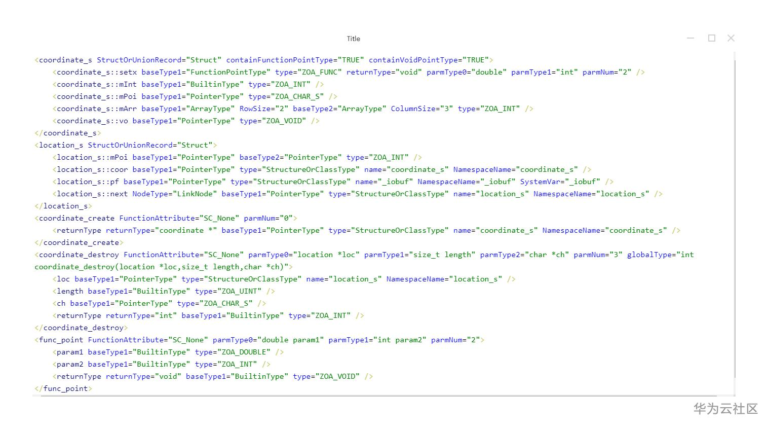 针对复杂类型,例如结构体类型location_s,成员变量中除了基本数据类型之外,还存在包含结构体类型的情况,如下所示的代码中,location_s中包含coordinate_s结构体,以及FILE等类型的信息,针对不同的类型进行标记区分。
