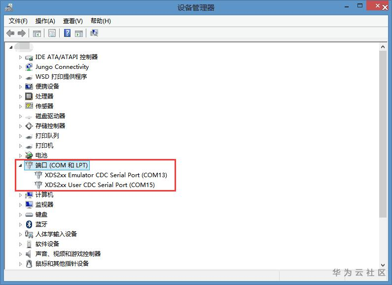 如下TMS320F2837x的开发,均以TL-XDS200仿真器为例。开发板断电,连接好仿真器和开发板,并将仿真器的USB口插进电脑USB插槽,开发板上电。右击计算机图标,点击“设备->通用串行总线控制器”或者“设备->端口”,查看是否有对应的仿真器的选项出现,如有说明仿真器驱动已经正常安装,否则请先正确安装CCS。