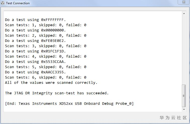 仿真器连接开发板,上电后,点击"Test Connection",测试仿真器是否连接成功。如下图所示: