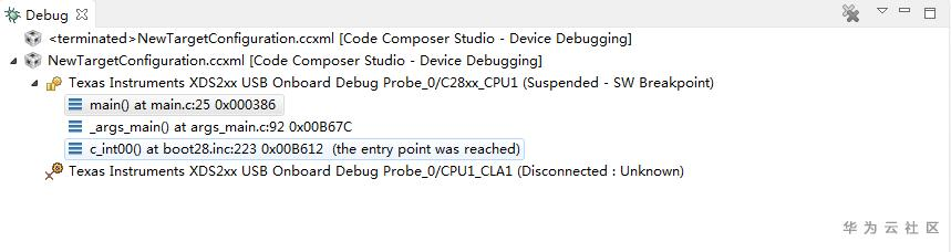 点击CCS菜单"Run->Debug",弹出以下类似界面,可以看到C28xx核,是可以加载GEL文件和程序镜像的。