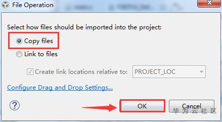 在弹出的对话框中,选择"Copy files",然后点击OK。