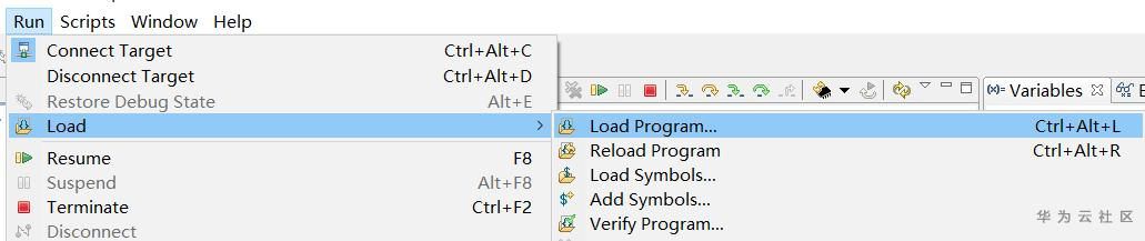点击"Run->Load->Load Program",选择刚生成的程序镜像文件并点击OK。加载完成即烧写完成,重新上电就可以运行程序。