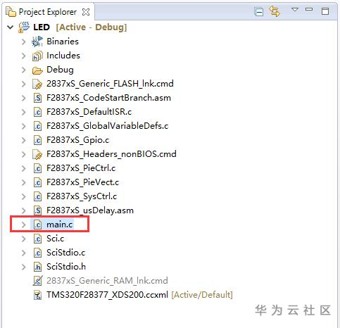 按照工程文件的导入步骤,将光盘资料中"Demo\DSP_F2837xD\SYSBIOS\Application"路径下的LED工程,导入到CCS的Project Explorer窗口,如图所示。