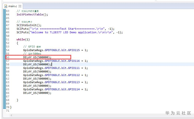 如果遇到烧写效果与仿真效果不一致,则有可能为例程中存在延迟函数,导致运行效果延迟较大(几百秒以上)或无法运行,解决办法如下:
