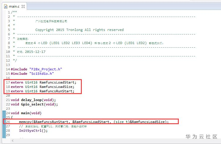 如有,请在文件里加入外部定义和复制内存地址代码,并重新烧写,添加位置如下图。