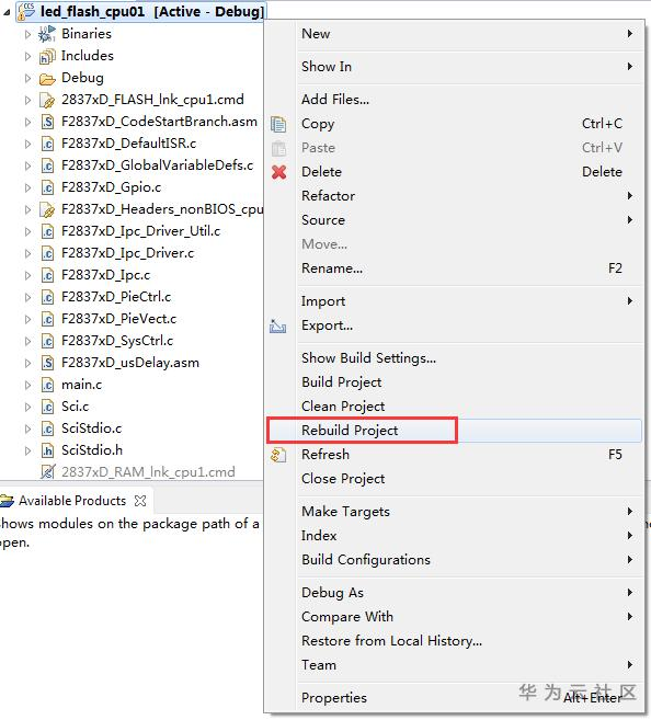 保存修改,点击"Rebuild Project"选项,重新编译工程。