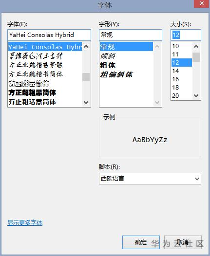 为了减少视觉疲劳,建议选择Yahei Consolas Hybrid字体,这是一种合成字体,由微软雅黑的中文字体和微软专为程序员开发的Consolas的英文字体合成的,特别适合中英文的编程开发和代码编写。先将光盘tools目录下的YaHei.Consolas.1.12.ttf文件复制到计算机"C:\Windows\Fonts"目录下。