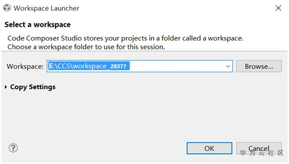 第一次启动CCS的时候会让你选择一个Workspace,Workspace就是你的工作空间也就是项目文件所在的目录,路径随意不能够包含非ASCII字符(例如:中文)。还有一点需要注意的是,Windows系统对文件路径是不区分大小写的,但是如果你使用的是基于Linux版本的CCS需要注意路径的大小写。