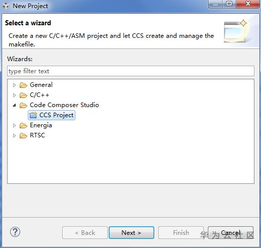 点击CCS菜单的"File->New->Project-> CCS Project"。如下图所示,