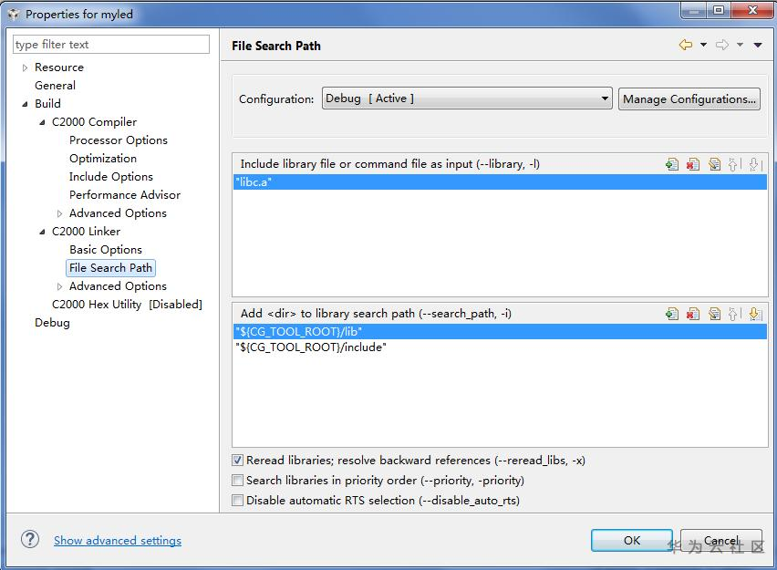 Output type:Executable,输出文件类型,可以选择可执行文件或者静态库,选择Executable编译出来的程序是可以被DSP直接运行的,选择"Static Library"可以供其它应用程序调用的静态库。