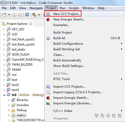 选择"Project"目录下的"New CCS Project…"