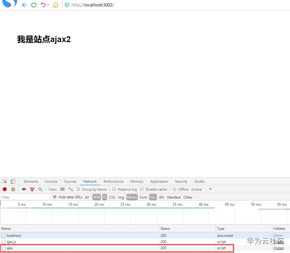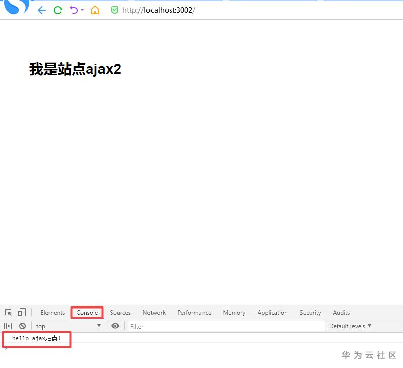 ctx.body = "f('hello ajax站点!')" //站点2中定义了f()这个函数配合<script>完成跨域调用,我们在这里也要调用f()函数