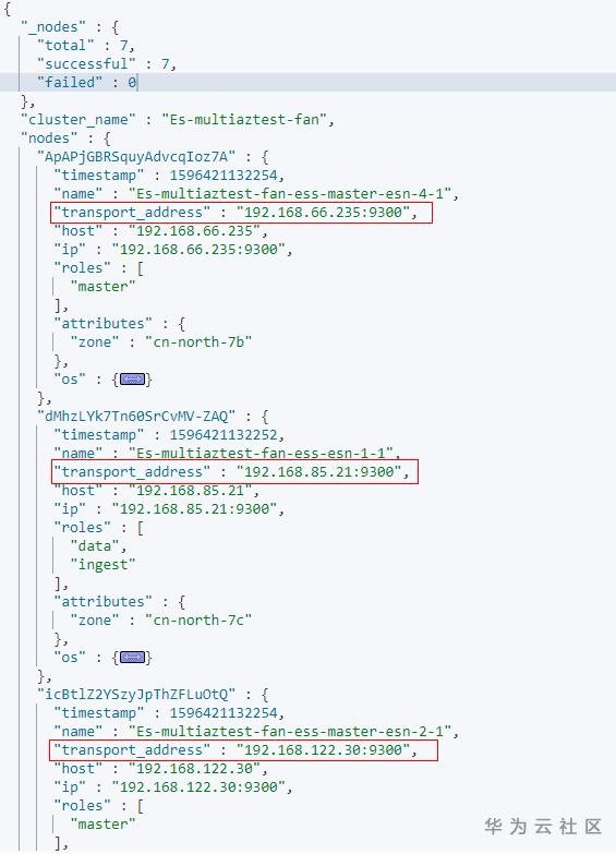 结果如下示例,获取节点的transport地址: