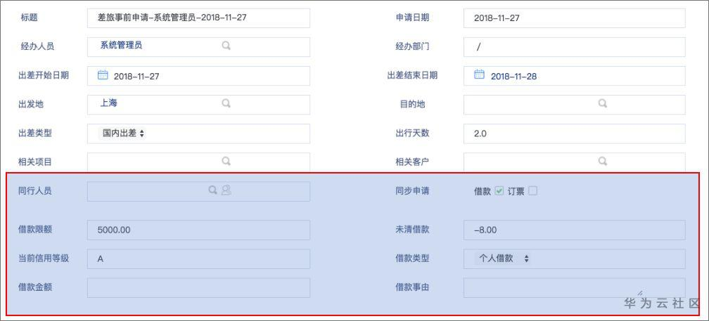 借支管理:业务如涉及大金额垫资等情况,在业务事前申请可以选择“借款”自动触发借款子流程,系统可根据员工信用管理模块自动获取员工最大借款金额并进行管控。