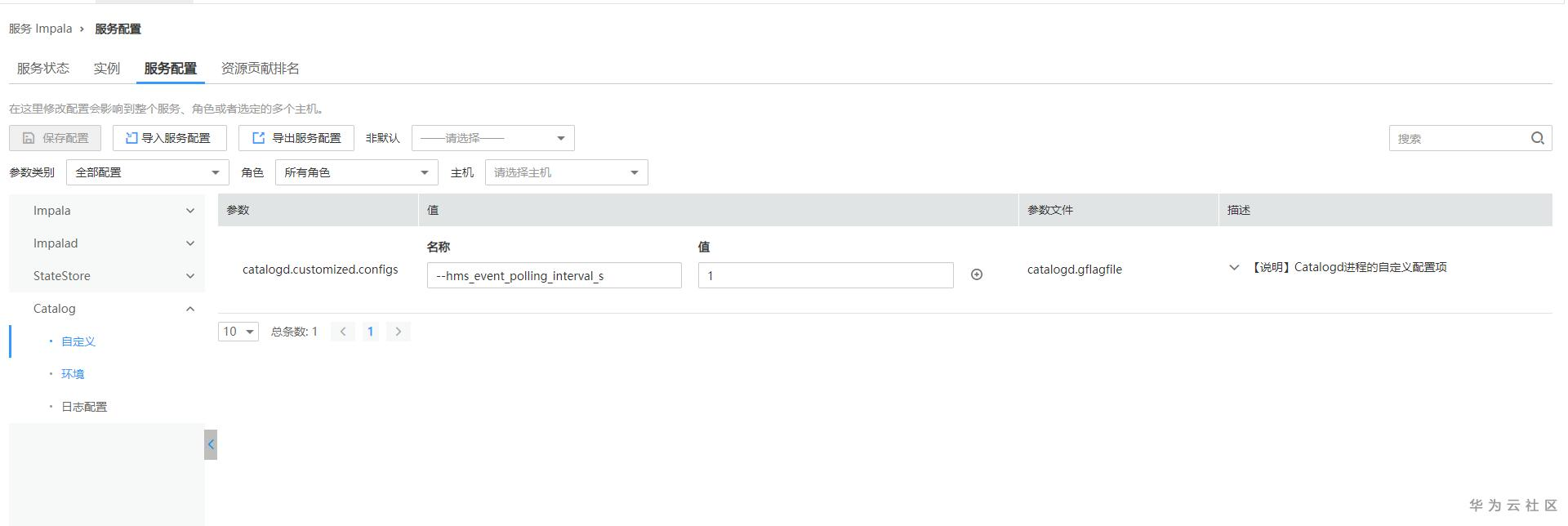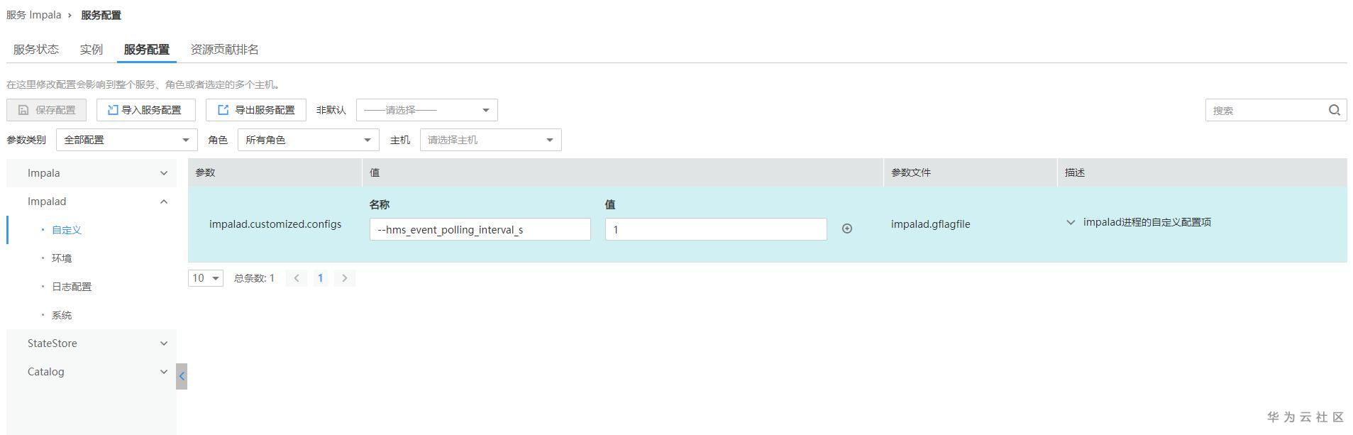 catalogd和impalad实例添加--hms_event_polling_interval_s=1,建议此值小于5