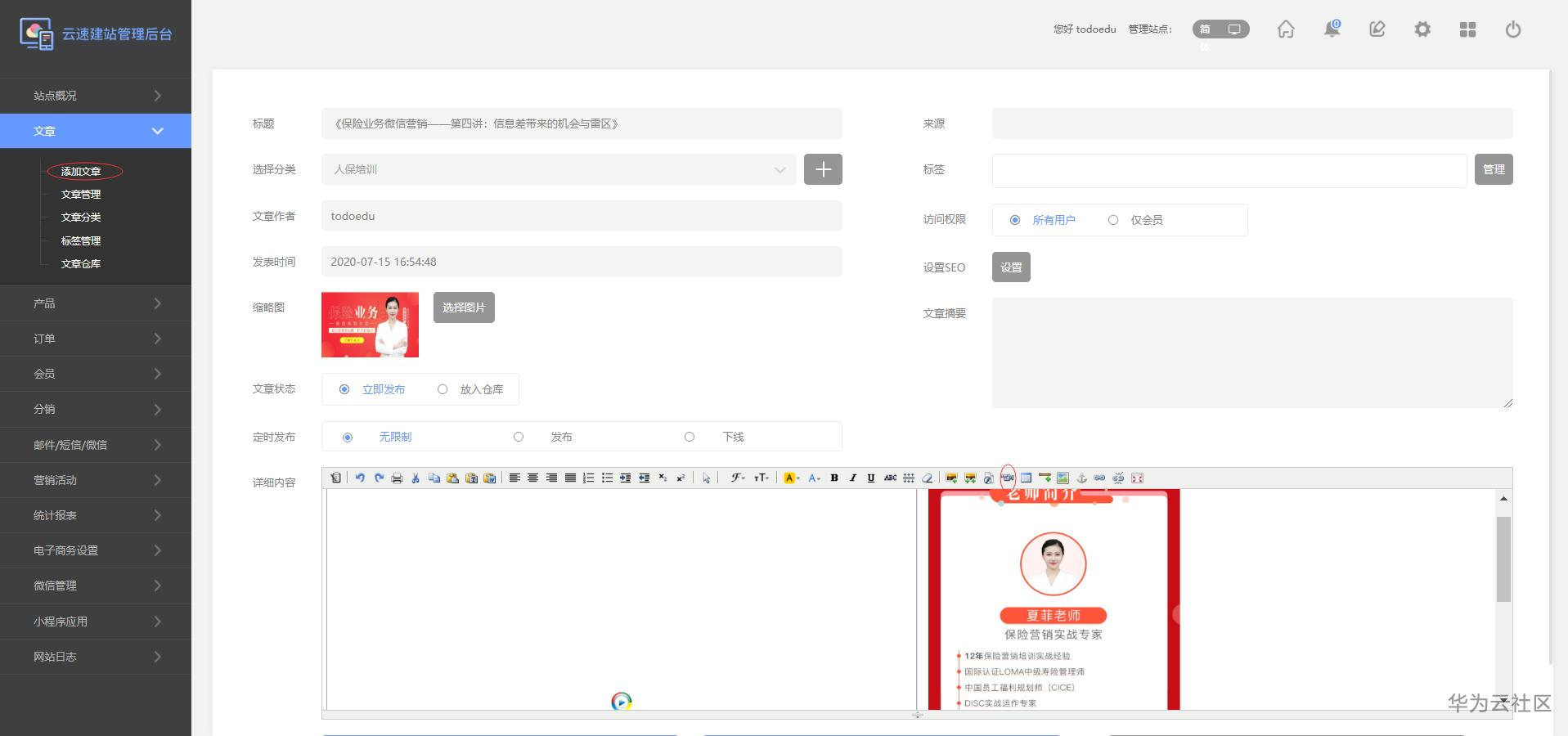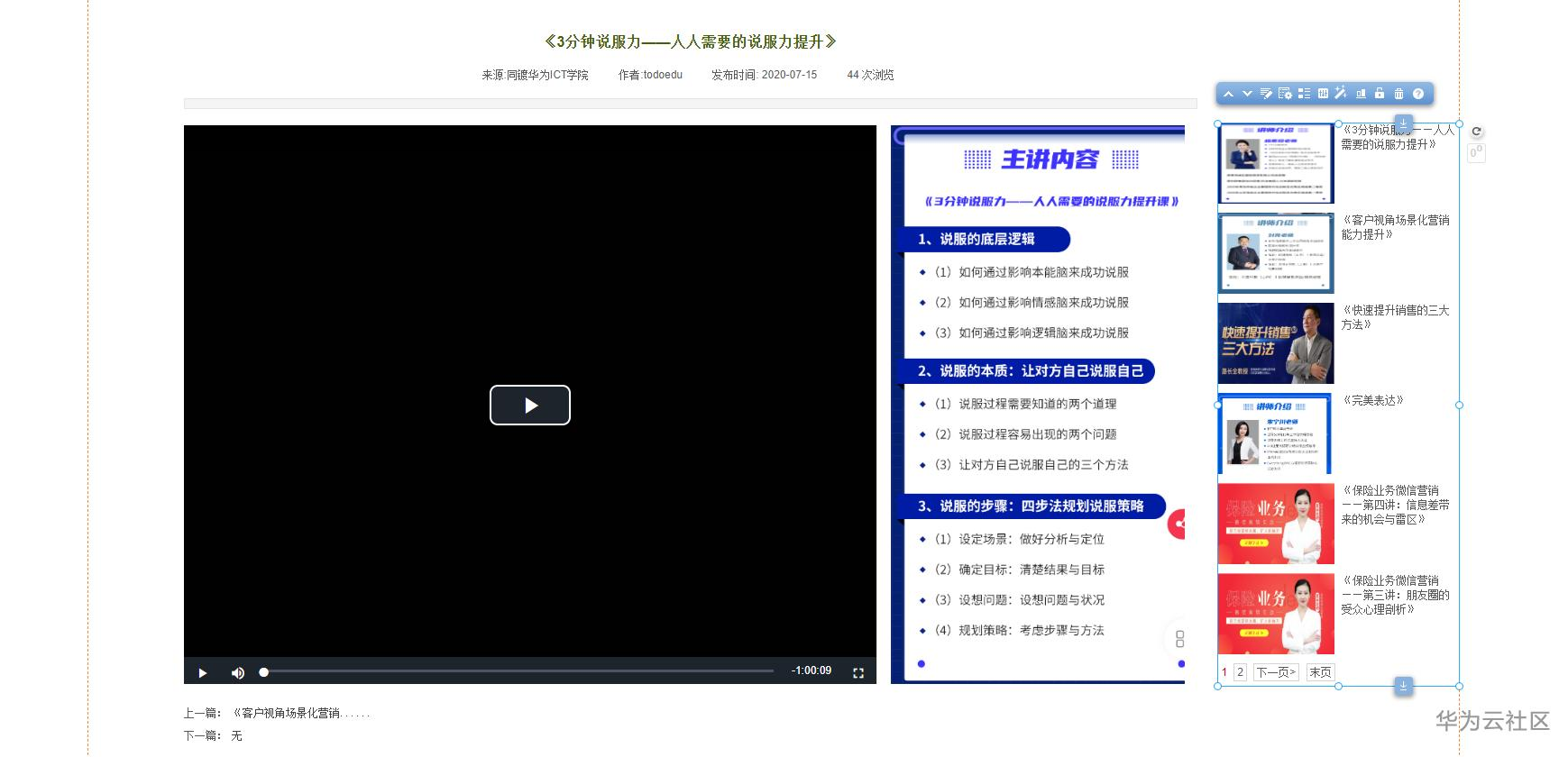 【华为云-建站之路】分享如何通过文章插件来做同页面多视频点播