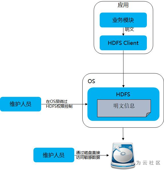 但是从整个IT系统层面看,OS和硬件这两个攻击面可以绕过HDFS的权限控制,非法获取到HDFS中的文件。比如当系统或硬件出现故障需要进行维护修复的时候,节点或者硬盘有可能进入系统管理员的管理范围之外,这时维护人员就可以通过OS或者硬盘直接读取HDFS保存在系统中的文件,造成信息泄露。