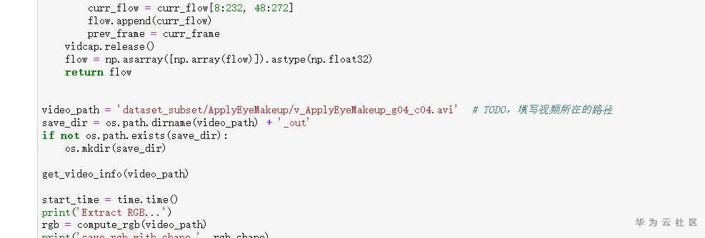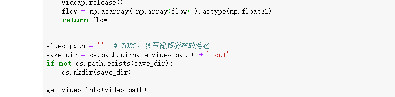 第2步、刚复制的代码并不能直接执行,找到该块代码中带有注释 “# TODO,填写视频所在的路径;