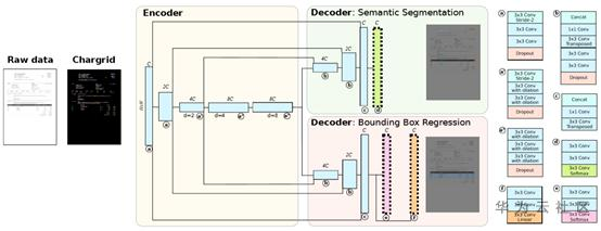 基于chargrid表征,作者采用了encoder-decoder结构的CNN网络进行关键信息的detection和segmentation,如下图所示: