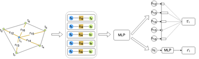 是将所有token的Word2Vec向量经过一个单层BiLSTM得到的定长向量。基于节点和边的特征,图卷积网络迭代地进行图卷积操作,整合上下文信息,进行特征的更新,具体公式如下: