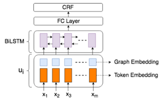 图5. 融合了图嵌入(由图4所示方法获得)的BiLSTM-CRF系统。
