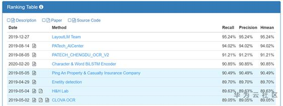 图9. SROIE测评排名情况[2] (截至2020年3月)