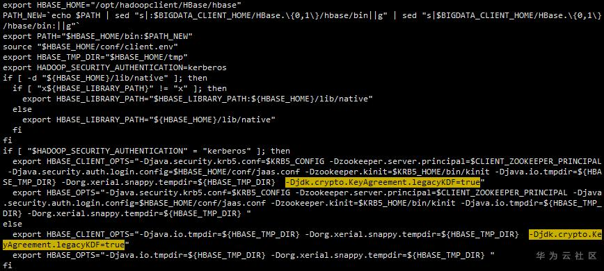 华为大数据平台dcf需要客户端修改配置(${dcf客户端目录}/HBase/component_env),如下图:
