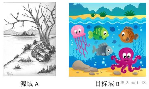以“素描”的源域A和“卡通剪纸”的目标域B为例,源域与目标域的图像如下图所示: