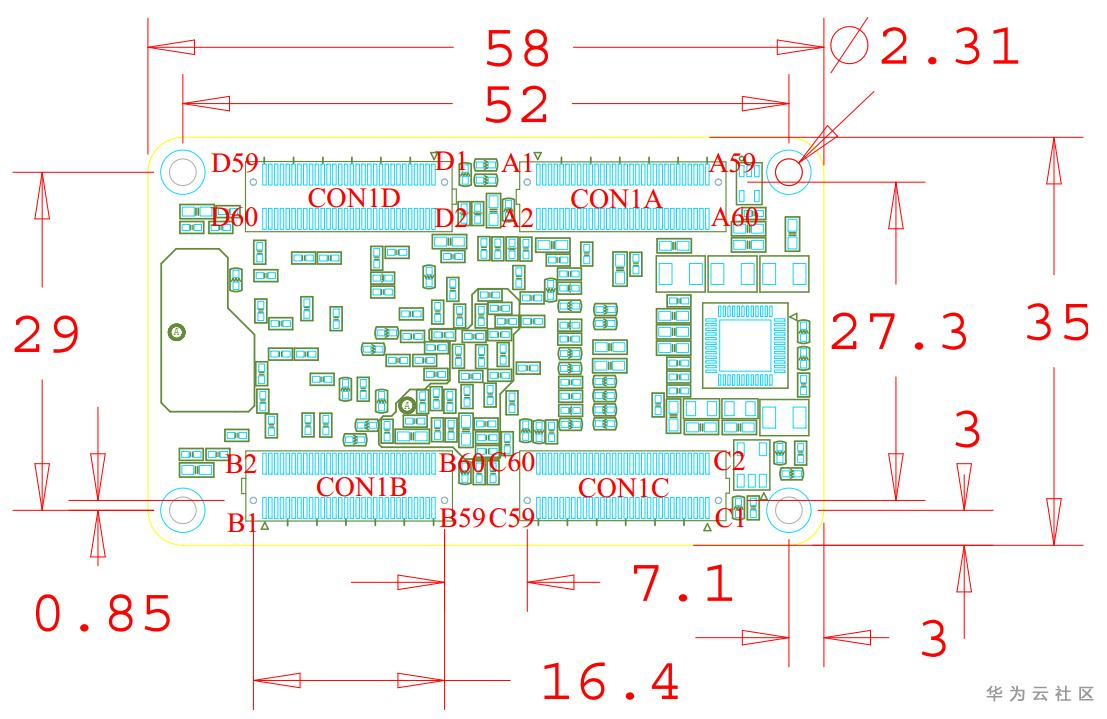 图 7 核心板机械尺寸图(顶层透视图)