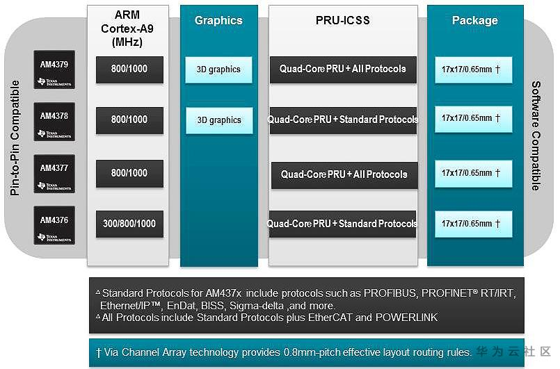 2x PRU-ICSS,每个PRU-ICSS子系统含2个PRU(Programmable Real-time Unit)核心,共4个PRU核心,支持EtherCAT等协议(仅限AM4379) |