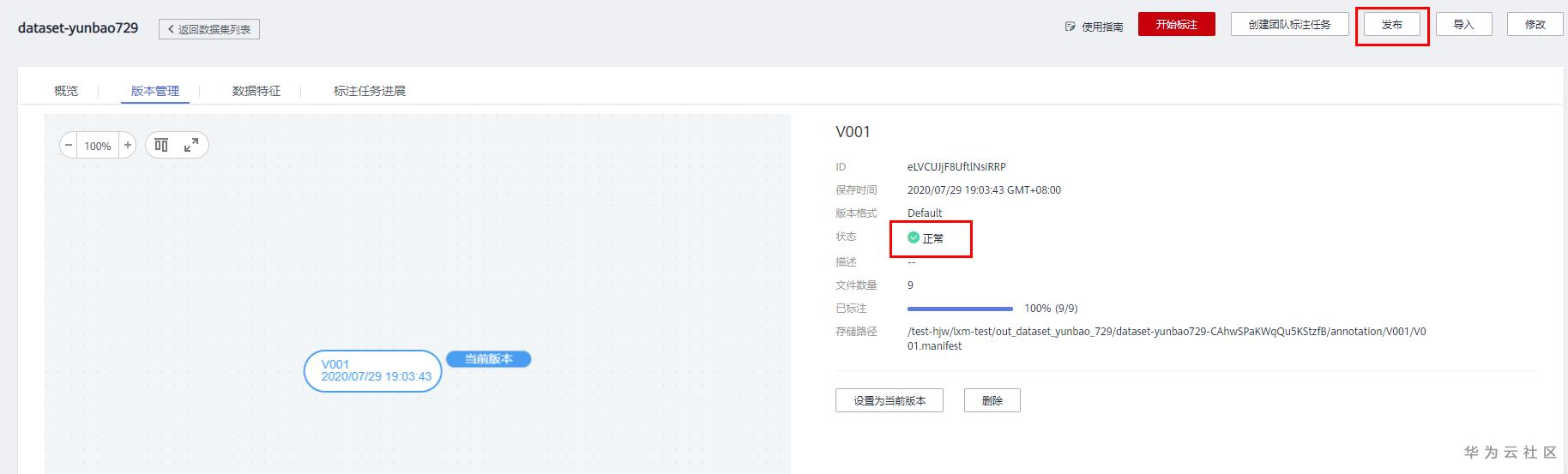 点击 发布 按钮,导入的数据能成功发布成新版本了