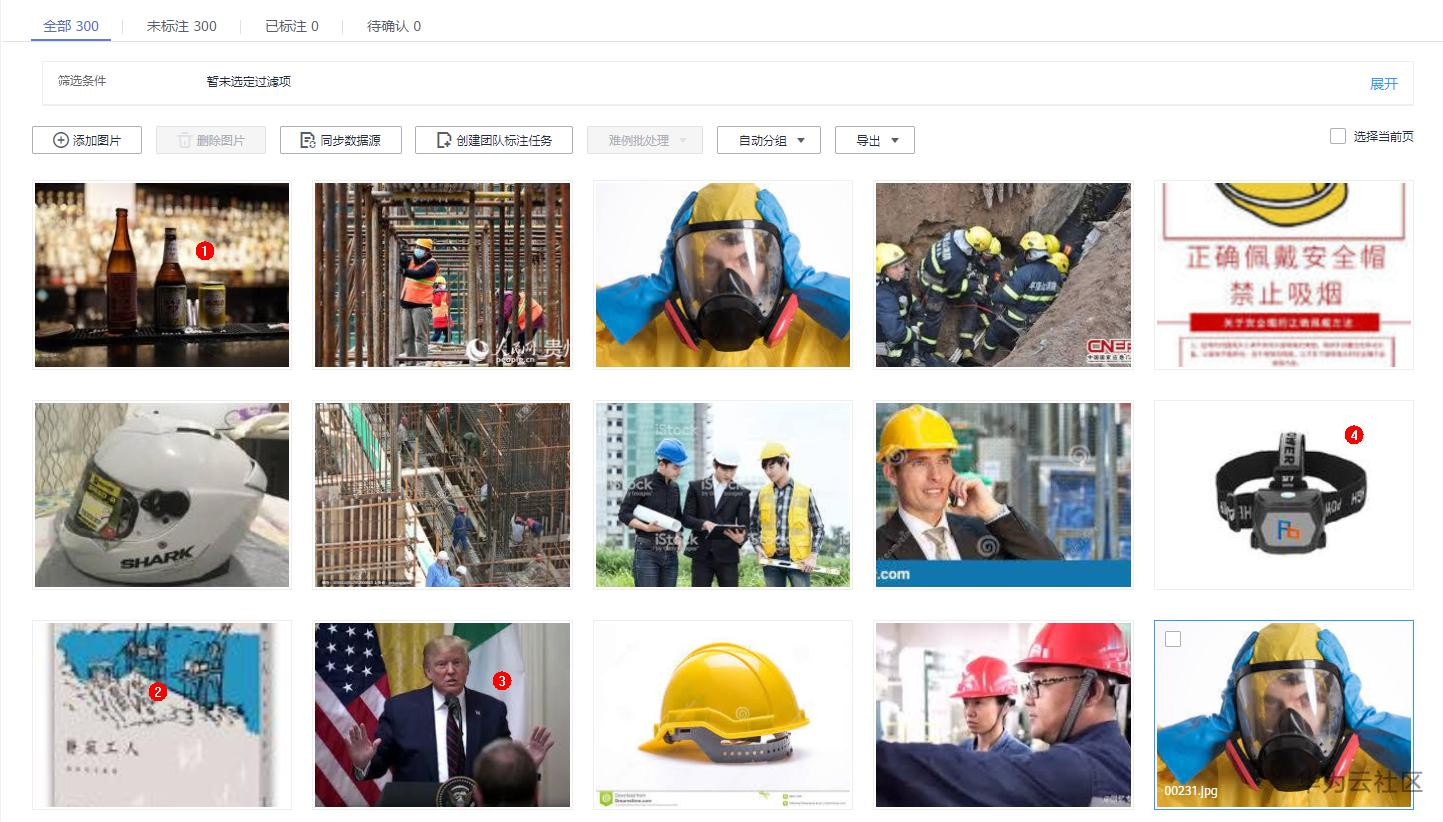 最后查看经过数据清洗后导出的数据集新版本,可以看到保留下来的都是包含各类安全帽的图片,不包含安全帽的图片都被过滤掉了,可以清洗出用户想要的数据。