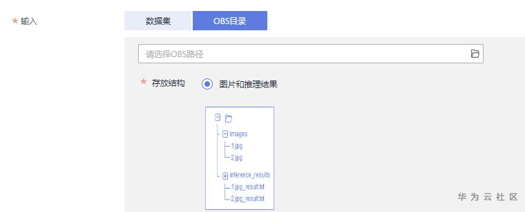看到算法要求,需要将输入数据以指定文件夹的格式组织,即选择的obs目录下要包含images和inference_results文件下。如下: