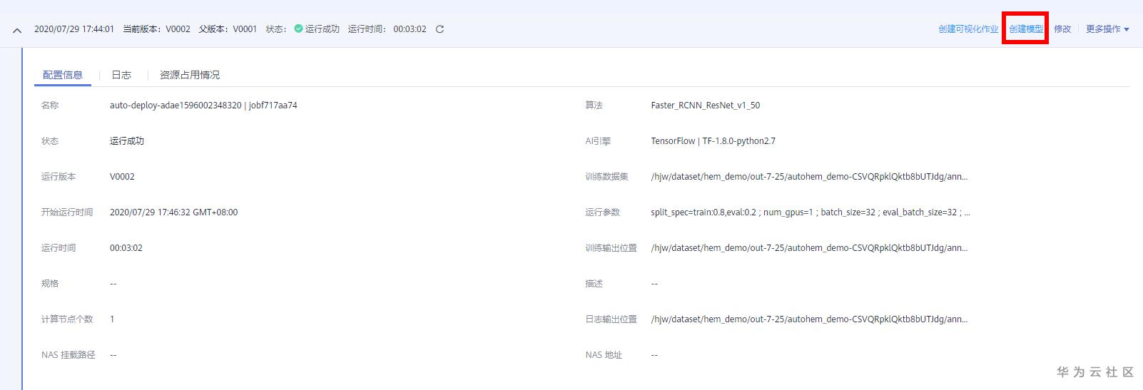 待增量训练的完成后,点击训练作业详情中的创建模型,发布新版本的模型,如下图: