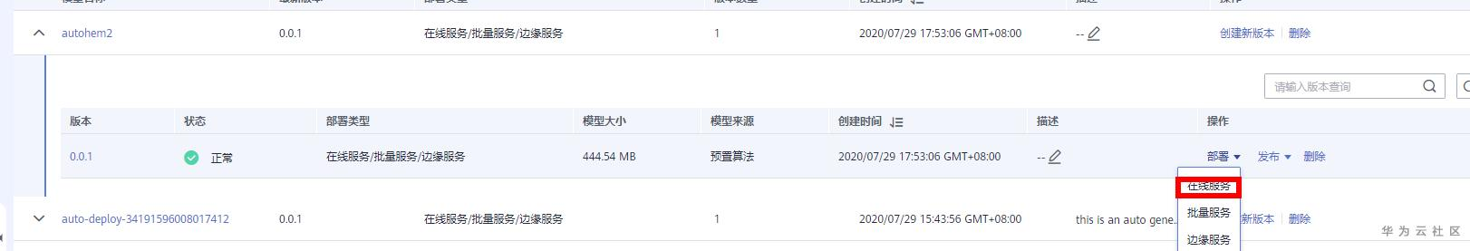 待模型发布完成后将其部署成在线服务,如下图:
